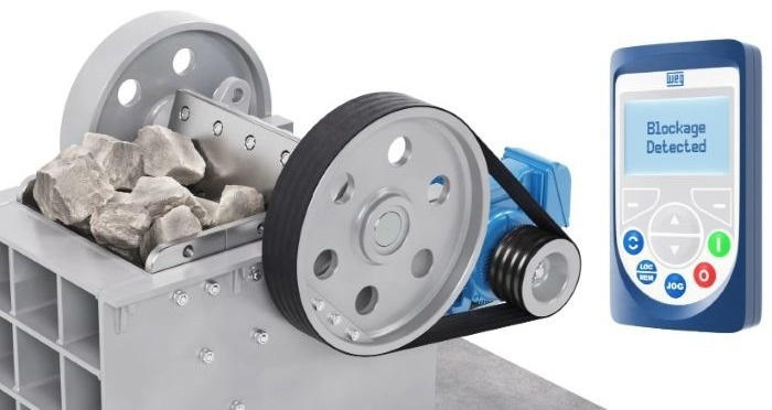 The system utilizes a WEG W22 motor, known for its durability and energy efficiency, paired with a CFW11 WEG inverter with built-in soft programmable logic control (PLC). This combination allows for smooth and energy-efficient operation, even when dealing with the large inertia of jaw crushers. The innovative software controls ramp times, current, torque, speed and direction to automatically unblock the system, all while minimizing power consumption.