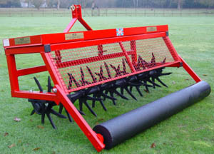 This is a 3 Point linkage mounted medium penetration aerator. (DAM) The DAM has penetration capabilities of up to 180mm (7in). The unit is three point linkage tractor mounted. A weight tray is incorporated in the design which gives a facility to add top weight to gain required penetration. This tray is also extremely useful for transportation of groundsman work tools etc. For safety purposes a rear mesh tine cover is fitted.